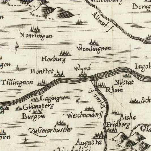 Ancient map of Bavaria and Baden Wurttemberg, 1602