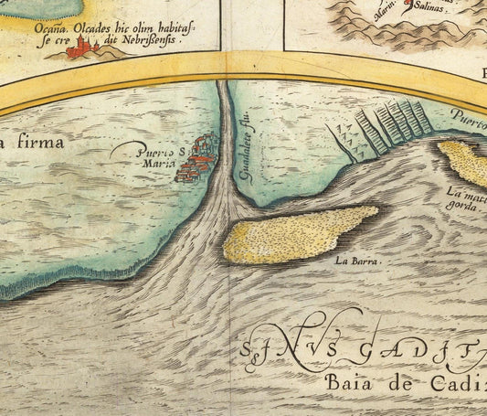 Ancient map of GuipUzcoa, Cadiz, Tagus River, Toledo, 1584