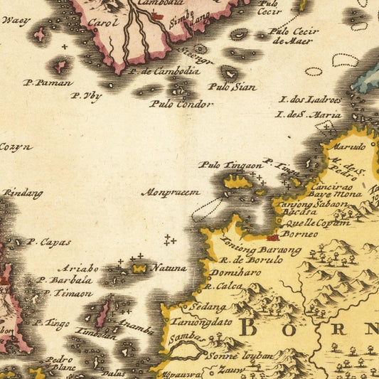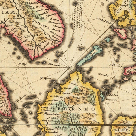 Ancient map of India Orientalis, Southeast Asia, Philippines, 1610