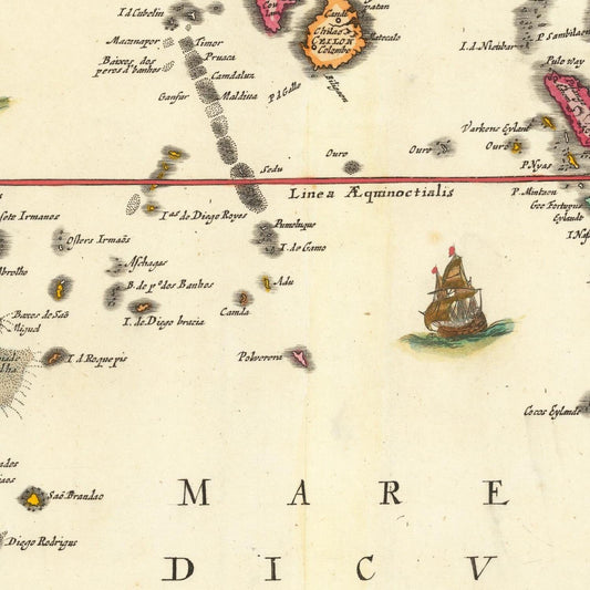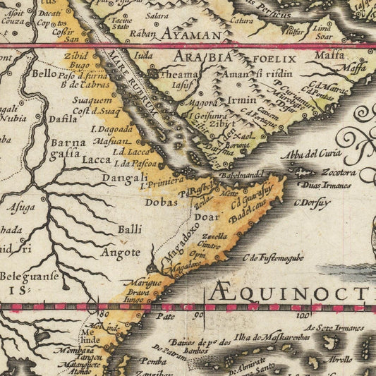 Ancient map of Indian Ocean, India, Southeast Asia, Africa, and Australia, 1611