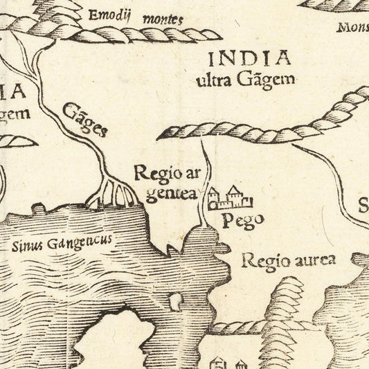Ancient map of India Extrema XIX Nova Tabula, 1542