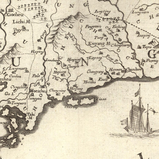 Ancient map of Hong Kong, Taiwan, and parts of China, 1695