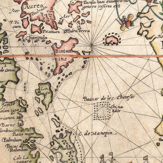 Ancient map of Java, Sumatra, Borneo, 1598, Houtman Voyage in Southeast Asia