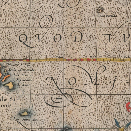 Ancient map of Maris Pacifici, Pacific ocean, 1603