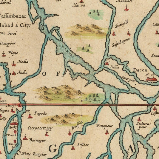 Ancient map of lower Ganges river and Bay of Bengal, 1685