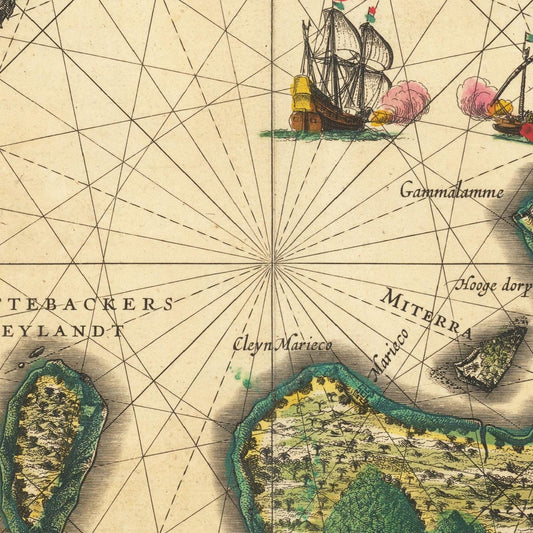 Ancient map of Maluku Islands, Spice Islands, 1635