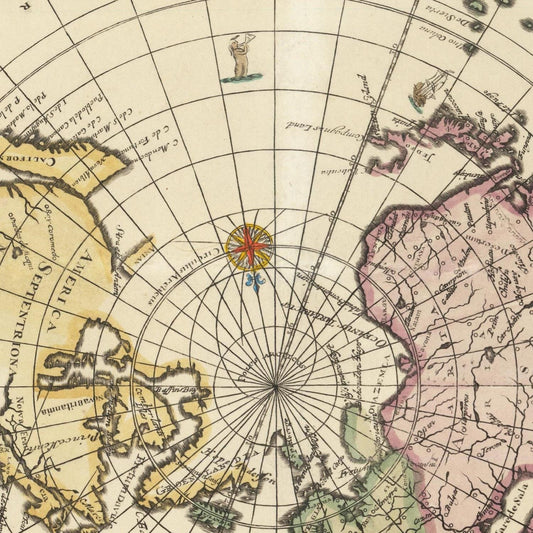 Ancient map of Newest description of the Arctic Pole and surrounding lands, 1636