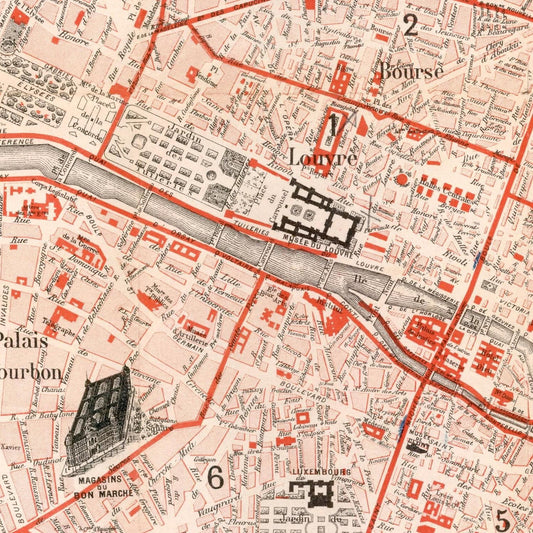 Antique city plan of Paris, 1891