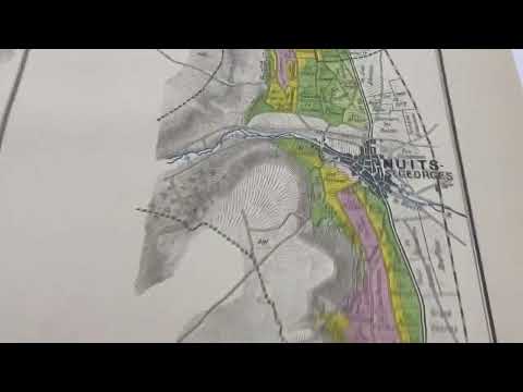 Old wine map of Burgundy Vineyards, La Côte De Nuits, France, 1942