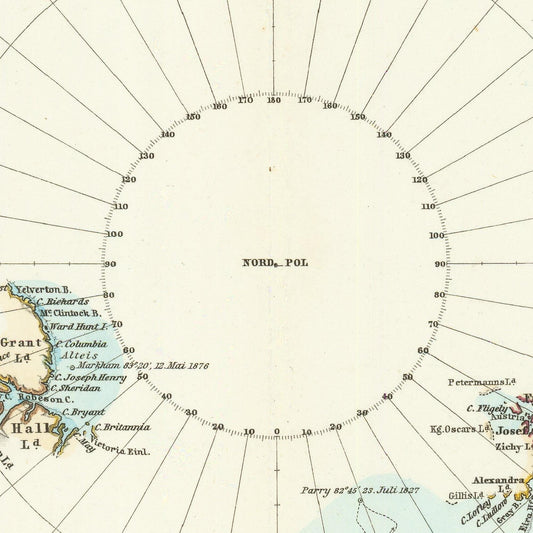 Old map of North Pole, German Edition, 1882