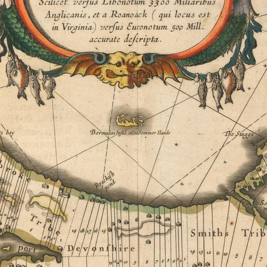 Ancient map of the Summer Islands, otherwise known as Bermuda, 1640