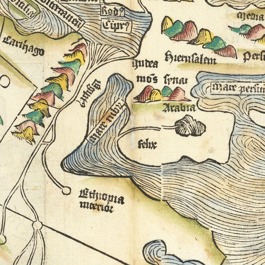 Ancient World map before discovery of America, Secunda etas mundi, 1493