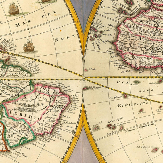 Antique World Map or Description of the Terrestrial and Aquatic Globe, 1792