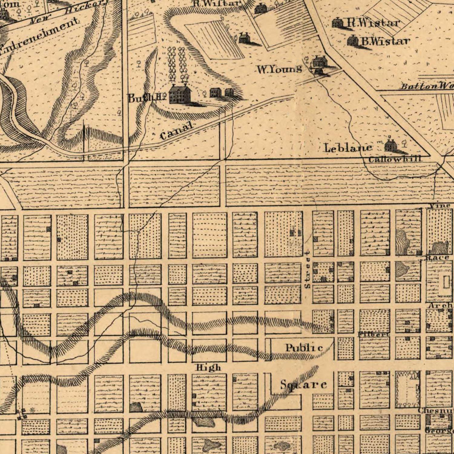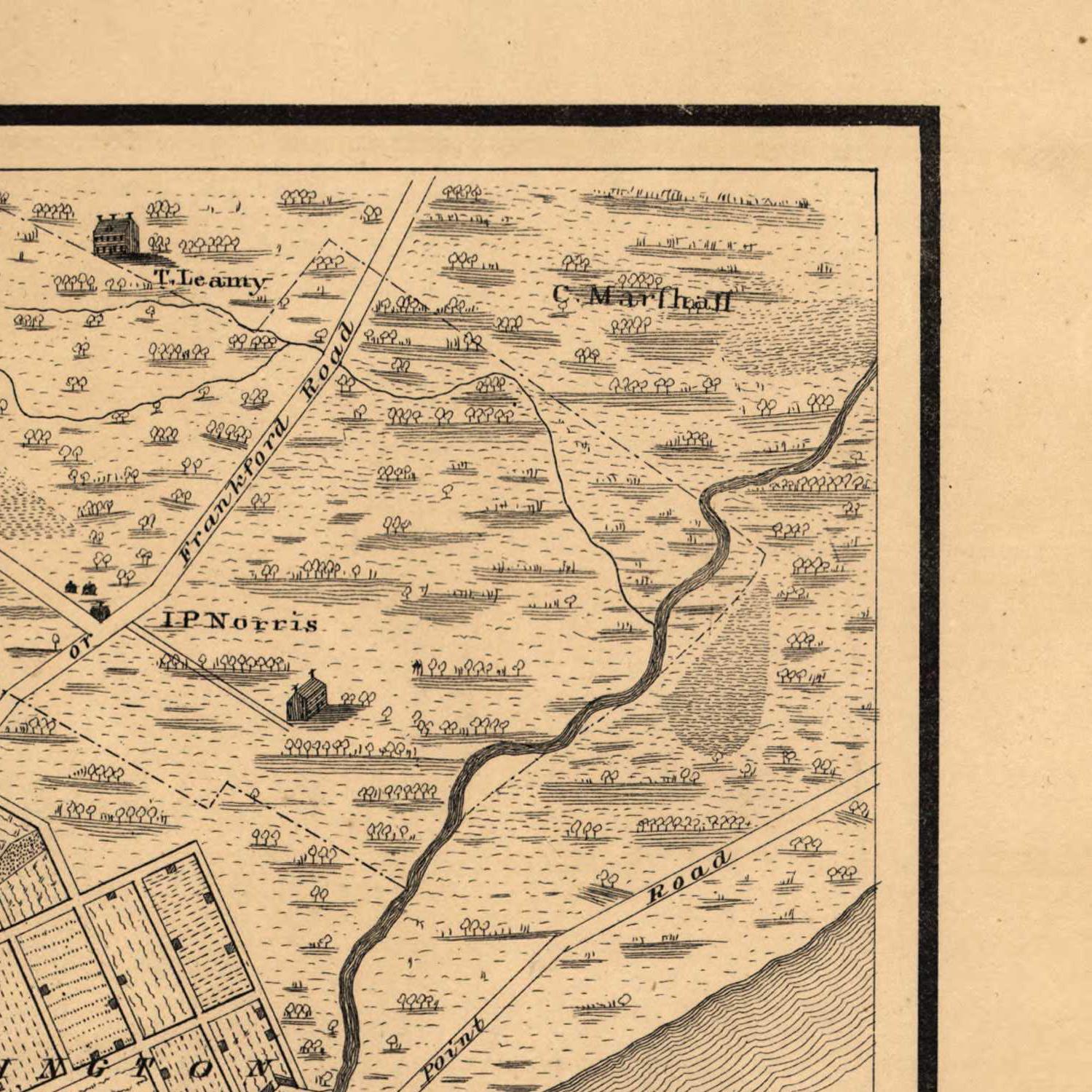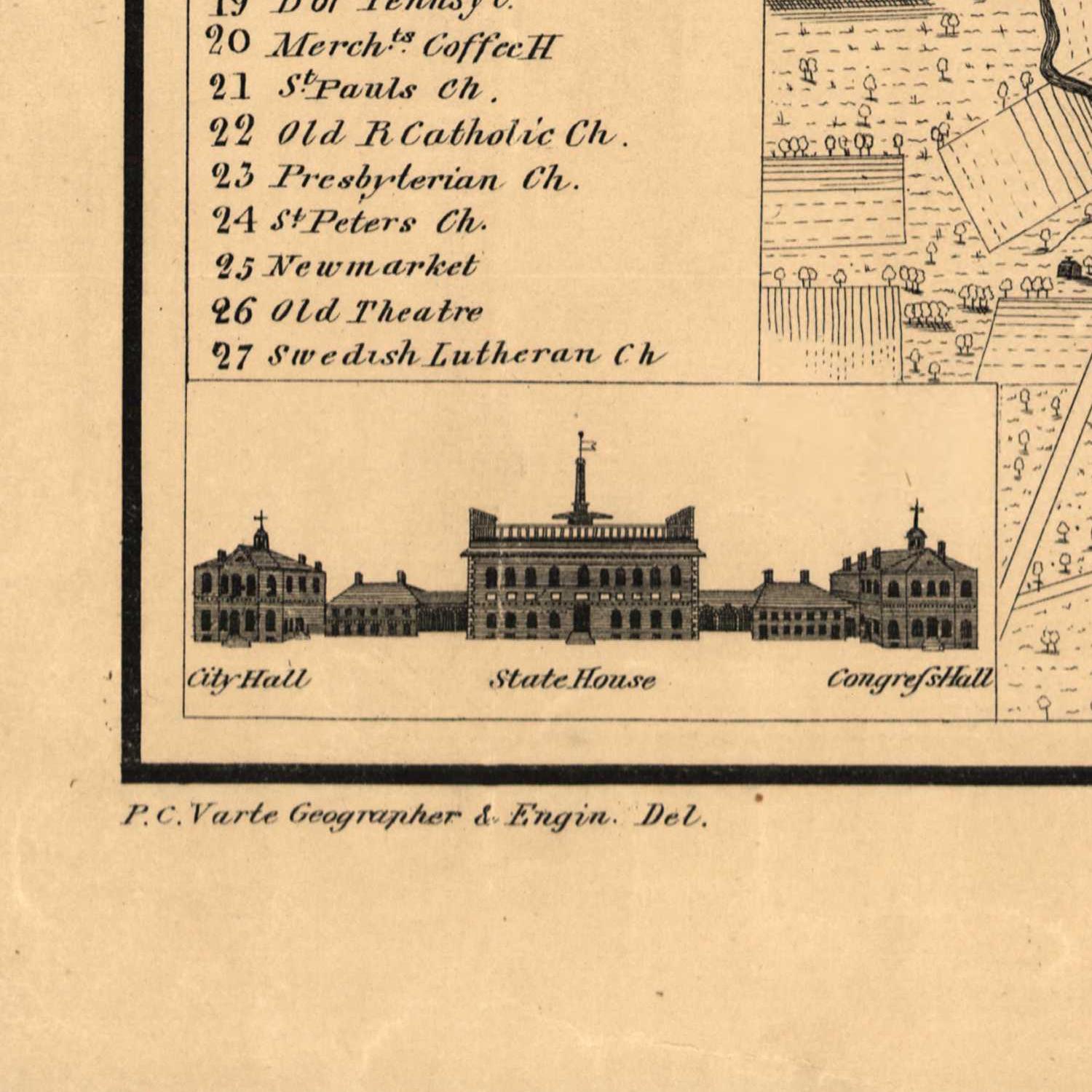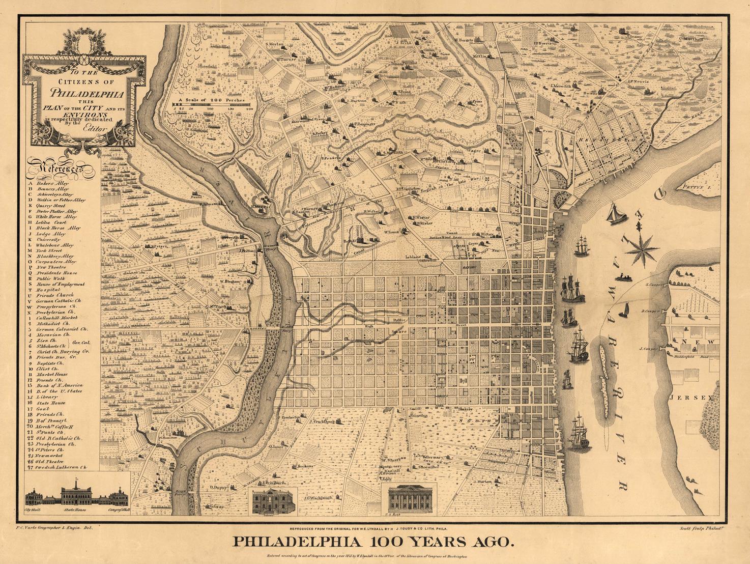 Varte, P. C. & J. Toudy & Co. published a map of Philadelphia in 1875 entitled "Philadelphia 100 Years Ago." The map shows the city as it would have appeared in 1775, during the American Revolution. The map is a valuable historical document, providing a glimpse of Philadelphia's past at a time when it was a major center of commerce and culture.