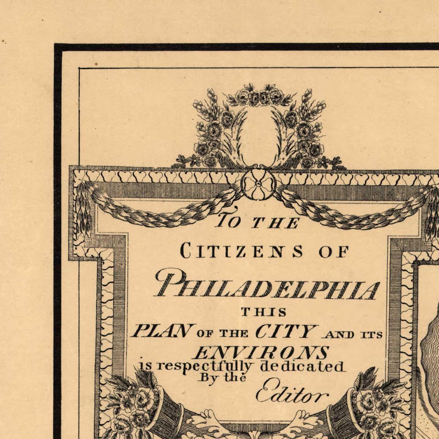 The map also shows the city's many rivers and streams. The Schuylkill River is the most prominent river on the map, and it flows through the center of the city. The Delaware River is also visible on the map, and it forms the city's eastern border.