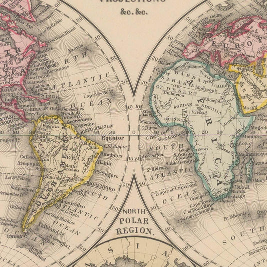 Antique map of the Current World or Terrestrial Planisphere, 1860