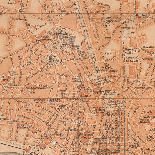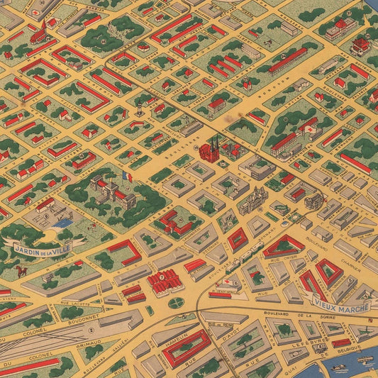 Old city plan of Paris, monuments map, 1925, (canvas print, 88 cm x 112 cm)