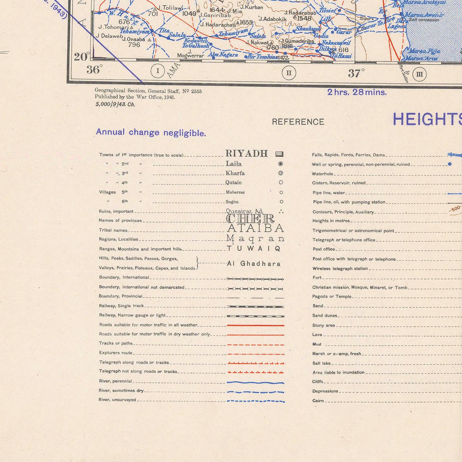By 1943, both cities were under the rule of the Kingdom of Saudi Arabia, established little more than a decade earlier. The map thus captures a pivotal era—when the region was consolidating political unity while maintaining its traditional urban structures and pilgrimage routes.